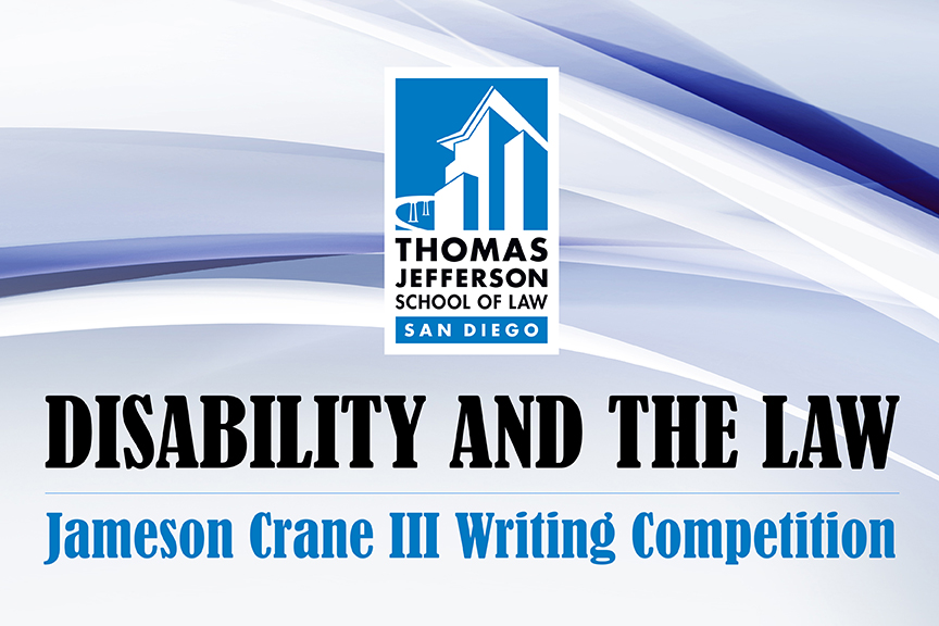 Competition submissions may address any legal topic related to disability law, including issues regarding employment, government services and programs, public accommodations, education, higher education, housing, and health care. An independent panel of experts will judge submissions anonymously based on originality, topic complexity, research quality, organization and analysis, and writing quality to select three winners. The first place winner will receive $1,500, while two-second place winners will each receive $1,000. The Thomas Jefferson Law Review will also consider the first place submission for publication.