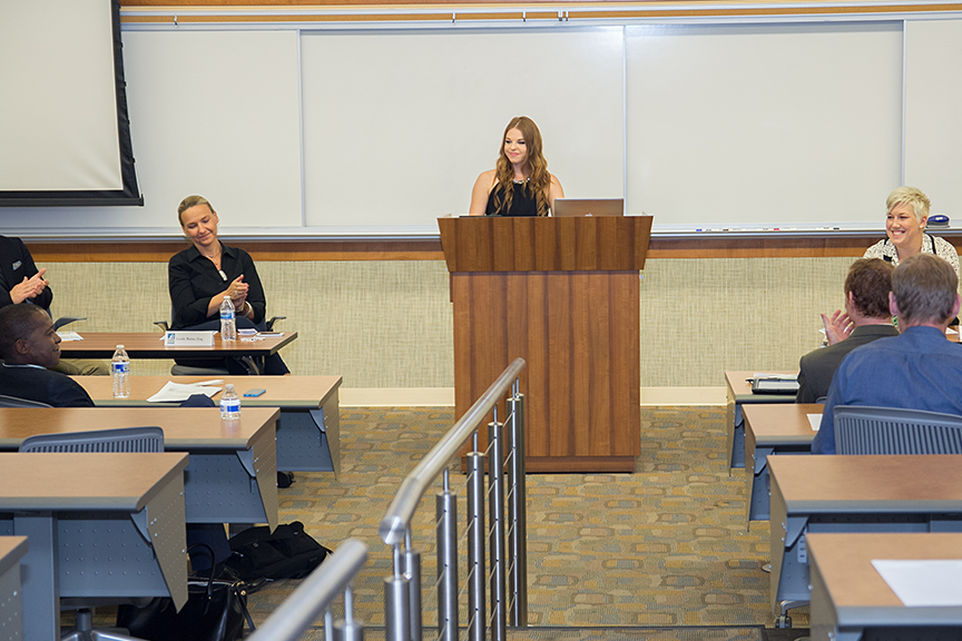 The question and answer session that followed revisited the panels’ discussions but also provided an opportunity to broaden the dialogue. Panelist Leslie Burns was impressed by the level of student engagement at the event. “There were good questions during the event itself and after, at the reception, I had several one-on-one conversations with very bright, interested, and thoughtful students,” said Burns. “I was also happy to see that non-students attended and were taking notes as well. We could have gone on for hours and I think the audience could have too.”