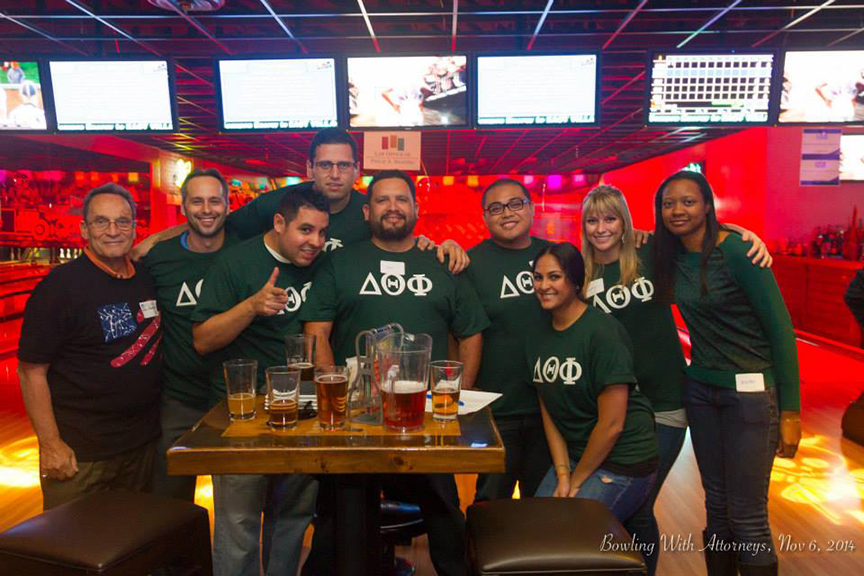 For the second year in a row, several student organizations partnered together with the TJSL Alumni Association to host “Bowling with Attorneys.” On November 6th, 2014, over 120 participants took over East Village Tavern and Bowl for this one of a kind event. With the goal in mind to bring together students from diverse backgrounds for this remarkable evening, mixed with a bit of professionalism, the Jewish Student Union (JSU) joined forces with: Business Law Society (BLS), Middle Eastern Law Students Association (MELSA), Phi Alpha Delta (PAD), Black Law Students Association (BLSA), Delta Theta Pi (DTP), Student Veterans of America (SVA), Intellectual Property Law Association (IPLA) and La Raza.