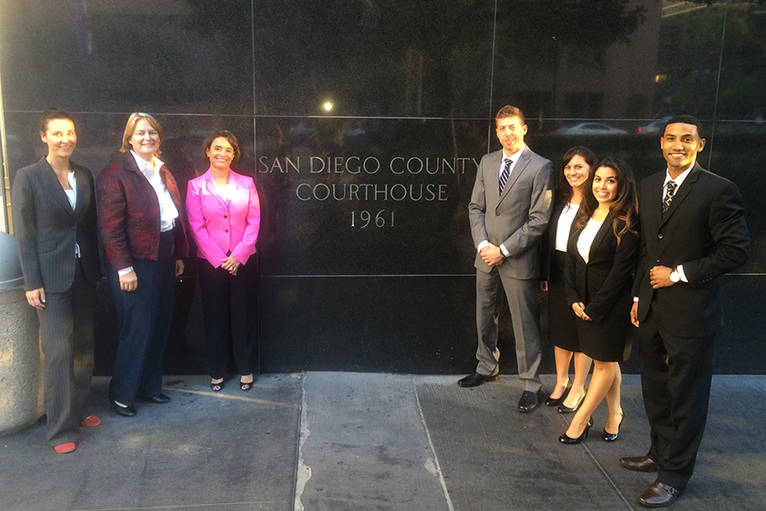 TJSL advanced to the final round after beating out the University of San Diego. “After months of preparation, we pulled together, strategically and creatively, and had the opportunity to put our trial skills to the test. Our efforts were validated and rewarded, when we learned that we would be moving on to the final round,” says Ms. McCracken. The final round was held at the Federal Courthouse in San Diego where Ms. McCracken and Mr. Garrett went against California Western for the second time. TJSL took second place in the ABTL competition as well as a $3,000 cash prize.