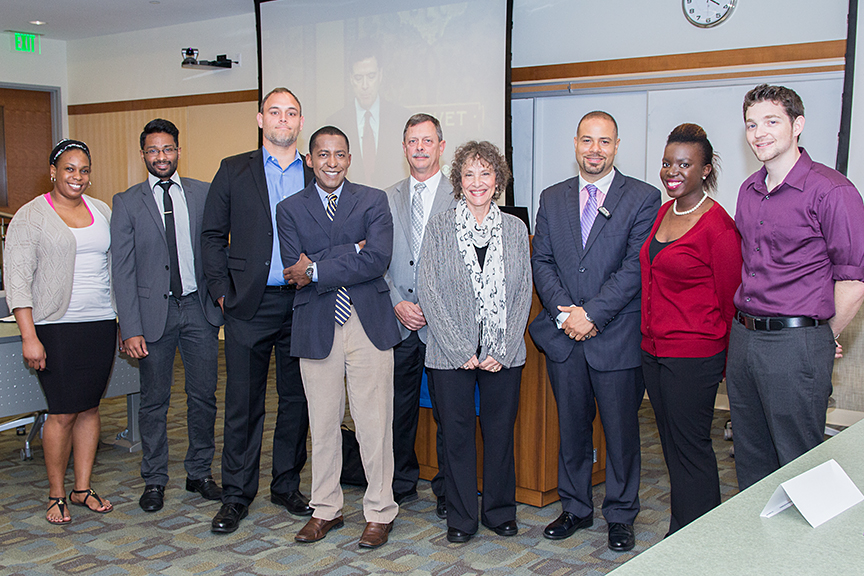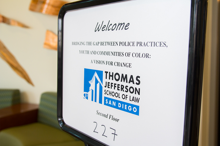 In light of Black History Month and the growing national concern about the nature of law enforcement’s interactions with community members of color, TJSL’s Center for Law and Social Justice, the Black Law Students Association (BLSA), La Raza, Earl B. Gilliam Bar Association (EBGBA), and the Diversity Committee under Crawford Law Institute Mentorship Bond Program (CLIMB) sponsored “Bridging the Gap between Police Practices, Youth, and Communities of Color: A Vision for Change.” The interactive panel, held on Wednesday, February 18, 2015, brought together students from Crawford High School and community figures for a candid discussion about their experiences and thoughts on local law enforcement practices. The discussion began with an introduction by Professor K.J. Greene and was moderated by co-founder and Chair of the Diversity Committee of the CLIMB Program, Professor Maurice Dyson.