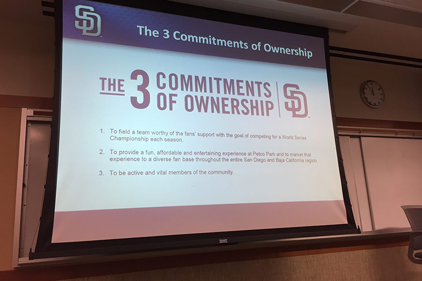 Tom Seidler, who is a member of the San Diego Padres ownership group, presented to the Sports Law Fellows in the Center for Sports Law & Policy at TJSL on Friday, February 20. During his presentation, Seidler discussed the current state of and the future the Padres organization, the flurry of moves that Padres General Manager AJ Preller made during the off season, and the goals of the new ownership group.