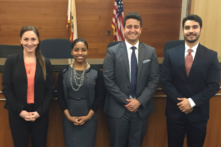The issues for the competition are heavily based on Civil Procedure, allowing the Moot Court team members to first handedly apply what they have learned in the classroom. These moot courters have given a great deal of time and effort into preparing for the prestigious competition. During winter break, the competitors had to do a little more than just enjoy the holidays. With their brief being due in early January the team had to work past the desire of wanting to rest after a long semester. In addition, the members had to work past the distance; Grover was in Canada, while Cole was in Las Vegas, the remaining members were in San Diego and Los Angeles. However, distance did not stop this team from producing an impeccable brief. These hurdles only brought the team closer and allowed them to form a strong bond as each person made sacrifices, knowing that the rest of their team would be counting on them.