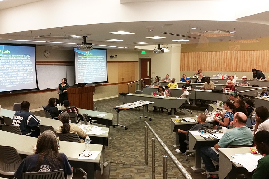 In addition, information was provided about affordable housing resources as well as local laws pertaining to the rights of tenants with criminal records. Marvin Winters, a formerly incarcerated individual, who has now turned his life around and is working with San Diego Dads Corps to help others successfully transition into society, was also in attendance. Not only does Mr. Winters’ success story inspire similarly situated individuals but he was also able to provide valuable information to attendees facing difficulties obtaining housing stemming from their criminal record.