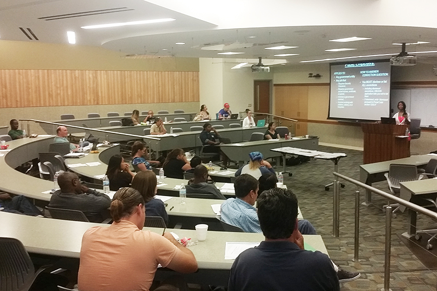 The Justice and Reentry Society (JRS) hosted their second “Know Your Rights” event at TJSL on Saturday March 28, 2015. The purpose of the event was to assist those with a desire to transition to becoming productive members of society but were being held back by their conviction. With an environment encouraging dialogue and interaction, the Town Hall Meeting style event, open to the community, focused on resources and rights for those with criminal records. Information was presented, followed by a Q&A session detailing the criminal expungement process, housing, employment, education, Proposition 47, and 211 resources.