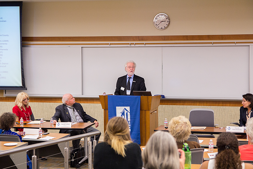 Panel #2 of the WLC featured presentations by Dr. Wendy Patrick, San Diego County Deputy District Attorney (on the early 20th century women’s’ rights advocate Clara S. Foltz); Professor Jerry Uelmen, Santa Clara University School of Law (on California Supreme Court Justice Rose Bird); and the Hon. Irma Gonzalez, US District Judge (Ret.) and neutral with JAMS (on U.S. Supreme Court Justice Sandra Day O´Connor). Professor William Slomanson was the fourth “Trailblazer” presenter and moderator for this panel.