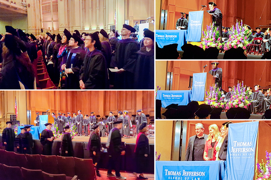 On Saturday, May 14th, the cheers and applause of proud family, friends, and faculty filled Copley Symphony Hall in downtown San Diego as Thomas Jefferson School of Law May graduates assembled. Chairman of the Board of Trustees, Randy K. Jones' introductory remarks were quickly followed by Dean Thomas Guernsey's presentation of the Summa plaques to the most distinguished graduates, including Valedictorian Michael John Christopher.