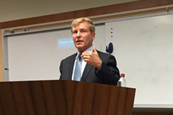 This was Steinberg's fourth visit to the law school in the last four years. Leigh was the keynote speaker at the Center's Third Annual National Sports Law Negotiation Competition in 2013. He was also recognized by former Center Director Rod Smith in 2013 with the "Excellence in Sports" Award. Leigh also spoke at the law school in 2014.
